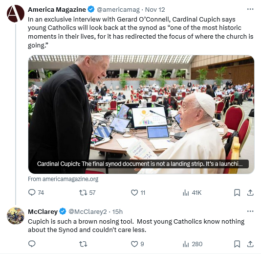 Exactly! Young people loath mediocrity. It’s in the DNA of the youth to demand more. The synod has served them hogwash. Who even noticed it took place apart from a few prayers during the Prayers of the Faithful every now and then. One of the most historic moments? Pfft.