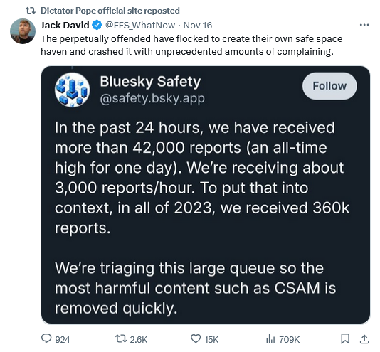 BTW, consider that Blue Sky claims it is removing CSAM (child sex abuse material) immediately. What is more abusive that mutilation and murder of a pre-born child which the technocrats controlling Blue Sky fully support and advocate under the banner of “women’s reproductive rights?