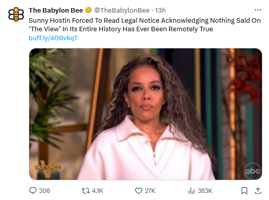 U.S. — In order to avoid further lawsuits, Sunny Hostin was forced to read a legal notice on camera acknowledging that not a single statement made on The View in the entire history of the show has been even remotely true.