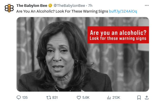 - You wake up from alcohol-induced blackouts with fragmented memories of having run for president. – If you’re having vague flashes of Beyonce, Lizzo, and Mark Hamill all endorsing you for president and calling you “brat,” you need help.