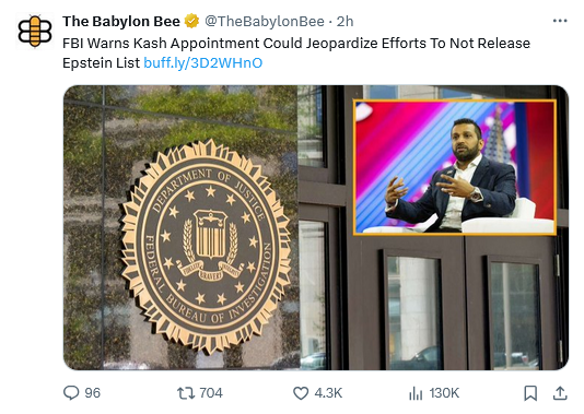 For years, the FBI has poured massive amounts of resources into not releasing the Epstein list, the Nashville shooter manifesto, the JFK files, and results the Las Vegas shooter investigation, all of which could be undone by Patel’s nomination.