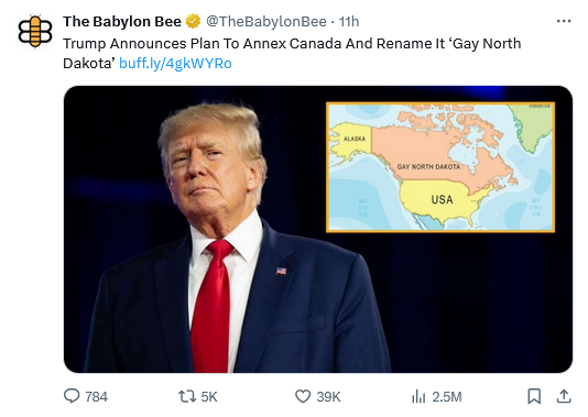 PALM BEACH, FL — In his most impactful promise yet in the lead-up to being inaugurated in January, President-elect Donald Trump announced an ambitious plan to annex the nation of Canada and rename it “Gay North Dakota.”
