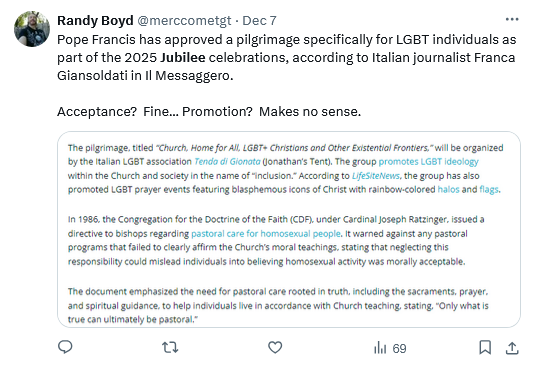 How many practising homosexuals are practising Catholics? Makes you wonder who this “pilgrimage” is really for…