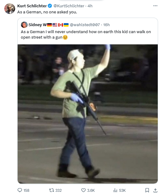 The German never asked the question: “Why did he need to be out there with a gun?”