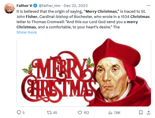 […] (and Christmas):The Bard at Christmas – Jaspreet Singh Boparai at The CriticThe Origin of “Merry Christmas”. . . St. John Fisher? – D. McClarey, J.D., at The American CatholicIt’s Called CHRISTmas for a Reason – Dan […]