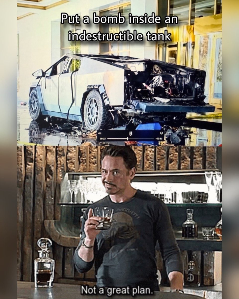 This quote from the Indian Times; “Amid this series of blasts, a witty statement has gone viral from Tesla CEO and billionaire Elon Musk, where he claimed that the explosion was an act of terrorism. He praised the Cybertruck’s design for minimizing the blast’s impact, mentioning that the vehicle limited the explosion and directed the blast upwards, protocting the hotel from significant damage. He took to X and wrote, “The evil knuckleheads picked the wrong vehicle for a terrorist attack. Cybertruck actually contained the explosion and directed the blast upwards. Not even the glass doors of the lobby were broken,”