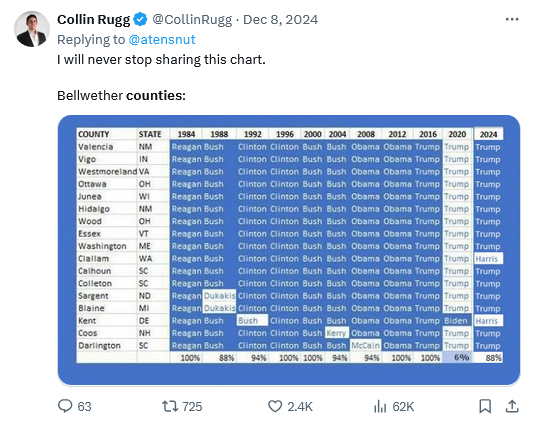 The Bellwether counties chart could drive the cheating politician to start using cocain, and lot’s of it, to numb himself of his own self hatred. (?)