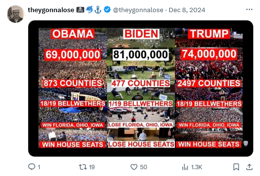 In sports, every time something unusual happens, the status period are all over it. “This is the first time a team has won after talking by x points with y minutes to go on the road with a 10 mph crosswind in the rain.” The fact that the Democrat media wasn’t praising Biden for his ability to win without those counties tells me all I need to know.