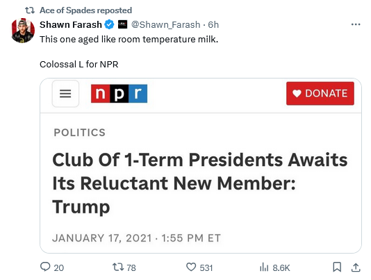 NPR is already screaming that it’s budget will be cut. It is seen as an impartial outlet by the left. ( Yeah, I know!) There are bigger fish to fry and it is useful to be able to listen in on what these people think is sane.