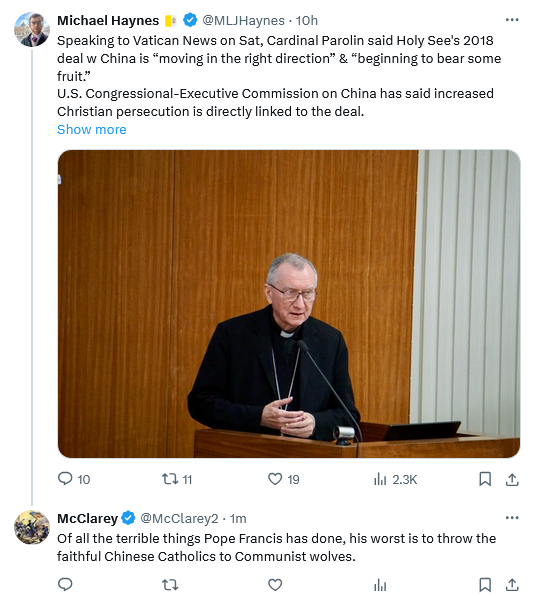 I sometimes wonder if, even with all the theological and disciplinary errors of Vatican 2, the refusal formally to anathematize Communism might be the worst of them all. The sucking up to the CCP we now witness certainly is one of its most terrible results.