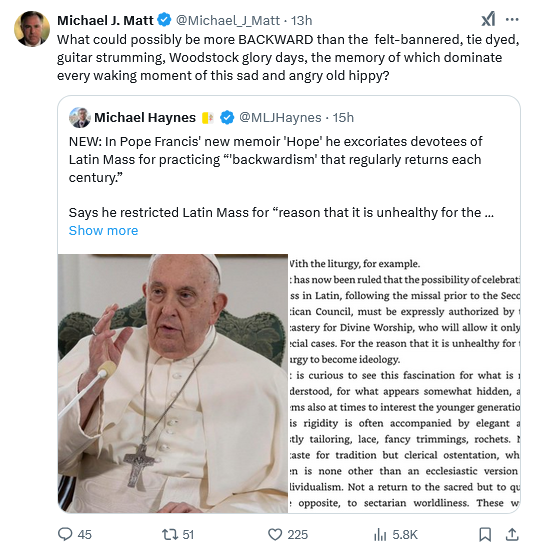 Maybe Pope Francis’ punishment in the next life will be to listen to the Mass in Latin for all perpetuity! Lord Jesus, please make it so, and soon!