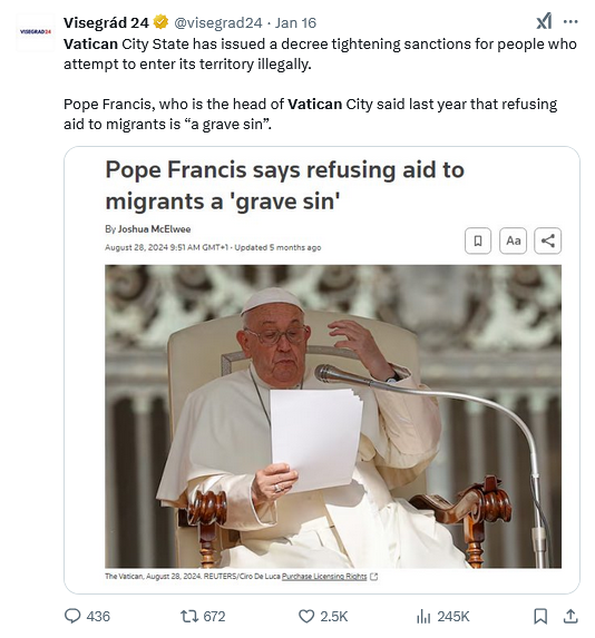 helping them return to the country of their religion is not what the pope is calling a grave sin.