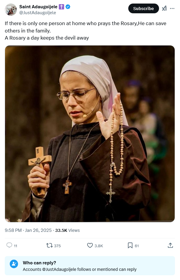 She could not read or write a word in her mother tongue. Yet she would never miss a day without praying the Rosary, sometimes twice a day. She would borrow my Rosary beads which my parents bought me from Lebanon when I was 8yo from Our Lady of Harissa in Beirut. She passed away after she fell into coma following a long battle with dementia and paralysis from a stroke. She was surrounded by her grandkids and she took her final breath moments after we finished praying the Rosary. She was Blessed with a good death.