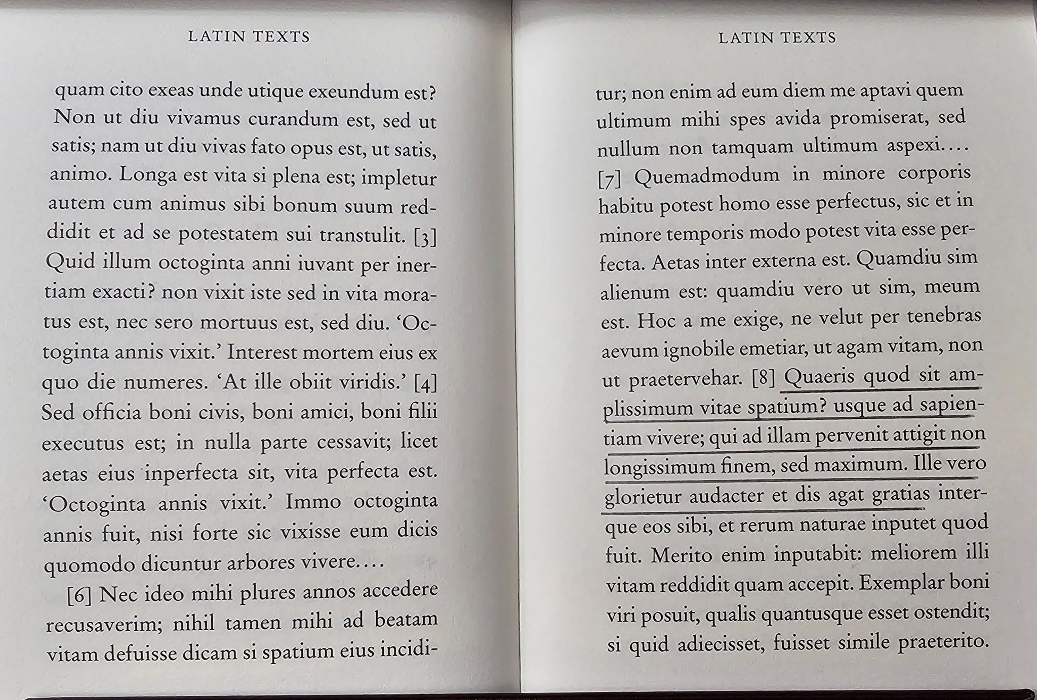 And what, you ask, is the fullest span of life? To live continuously for wisdom. He who has attained it has reached, not the furthermost, but the greatest end. Let him truly exult boldly and give thanks to the gods…