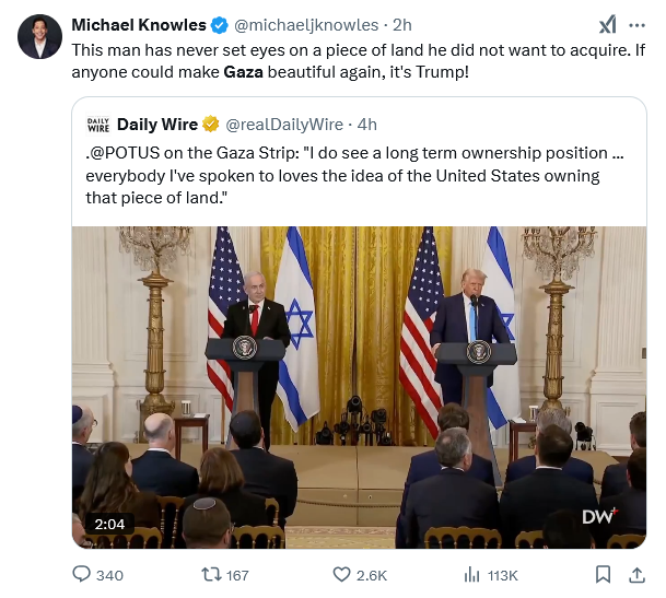 Now Trump says he’d like the US to “own” the Gaza Strip?