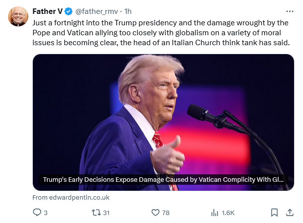 Of course throughout his pontificate the Pope has embraced causes, like climate change, that have bupkis to do with Catholicism. There is nothing stronger in this Vale of Tears than Catholicism when Catholicism preaches the Faith. There are few things more absurd than when clerics attempt to use the Faith to ride their own political hobby horses.