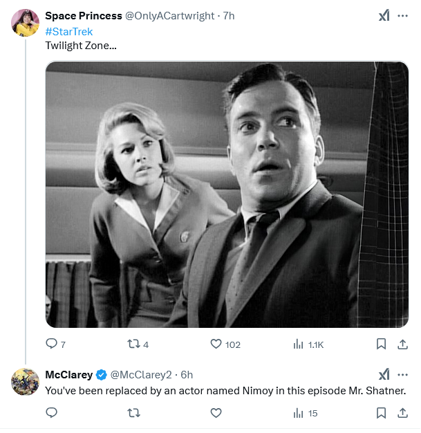 I remember that episode! It’s where Shatner sees a gremlin tearing apart the plane’s engine, but he can’t seem to convince the stewardess, or anyone else. And he goes crazy trying to tell anyone