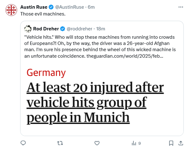 I think about that every time something like this happens, and the first reaction among German officials is to say “we must be sure to not blame Islam for this!” Making sure that people don’t get run over isn’t high on their list of priorities though.