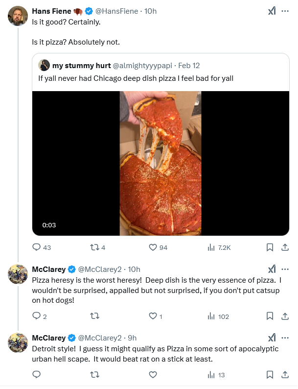 However, I live in the pizza desert known as the Midwest, where pizza generally comes from a freezer first and Casey’s GAS STATION serves one of the better pies. Oh the humanity!
