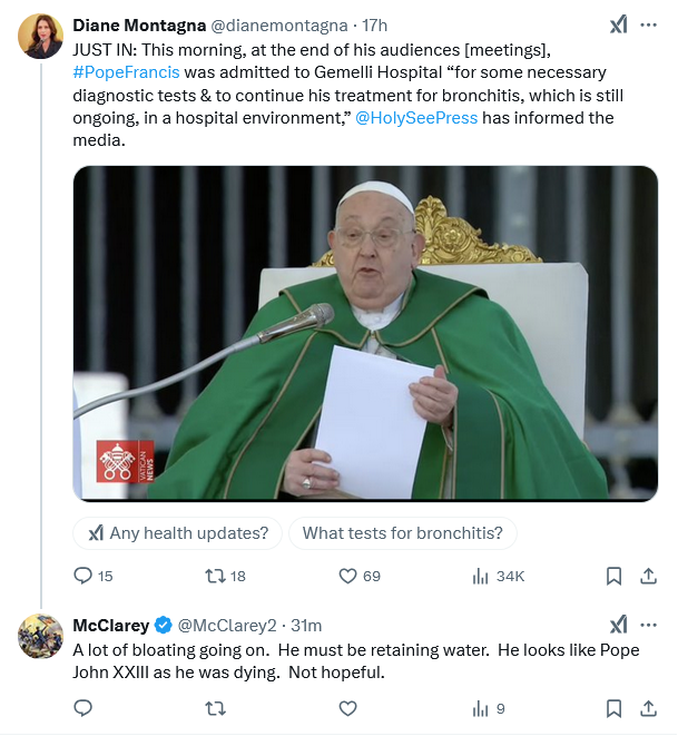 As for Pope Francis, given what he has done to the Church, I have little sympathy for him. The best I can do is pray that he dies in a state of grace even though he has not governed the Church in the state.