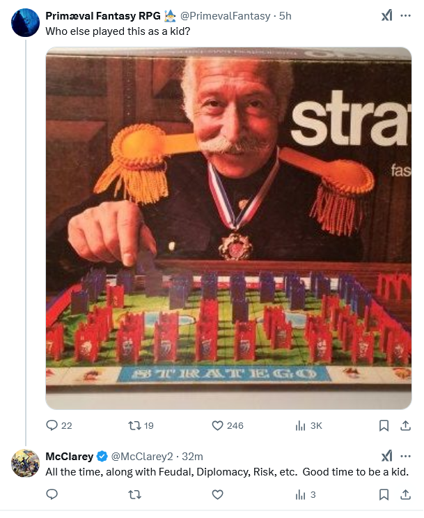 Grew up playing board games with my brother and about three others. Risk, Greyhawk Wars, Avalon Hill’s Civilization… Good times.