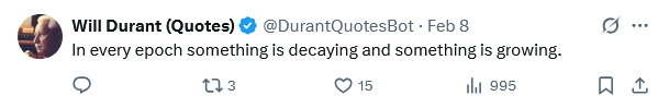 […] & Philosophical Analysis, Punditry, and News:In Every Epoch Something is Decaying & Something is Growing – The American […]