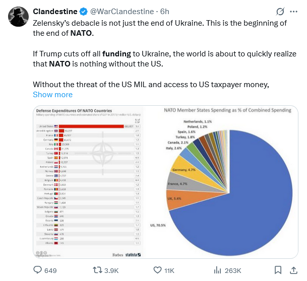 It has been three years since the Ukrainian War began, and most members of NATO have done bupkis to build up their militaries.  Without the US, NATO is a letterhead and not much more than that.