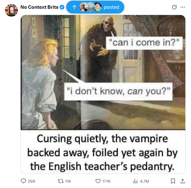 Then if I’m feeling generously snarky, I’ll give a short reminder about “can” versus “may”.