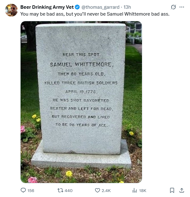 And in the case of Samuel Wittemore, they couldn’t even kill him.