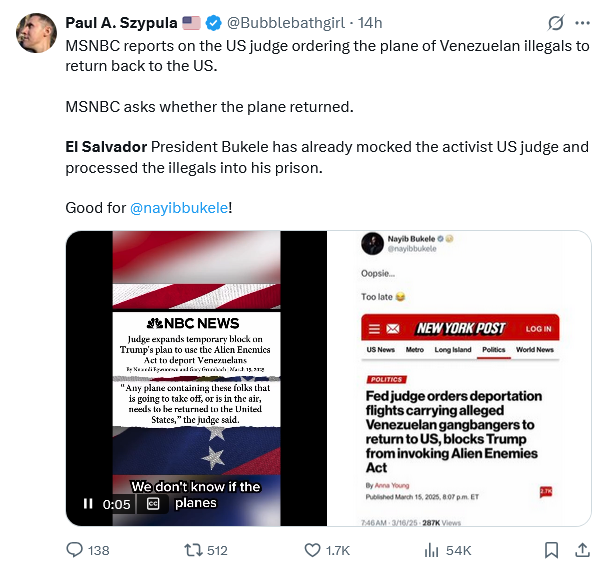 Last time I looked, the President was in charge of foreign policy and deportation of undesirable illegal aliens, and not some low ranking Federal District Judge. More work ultimately for the Supreme Court. Either the Supreme Court will reign these partisans in black robes in, or Trump will reveal why Hamilton called the Judiciary the least dangerous branch.