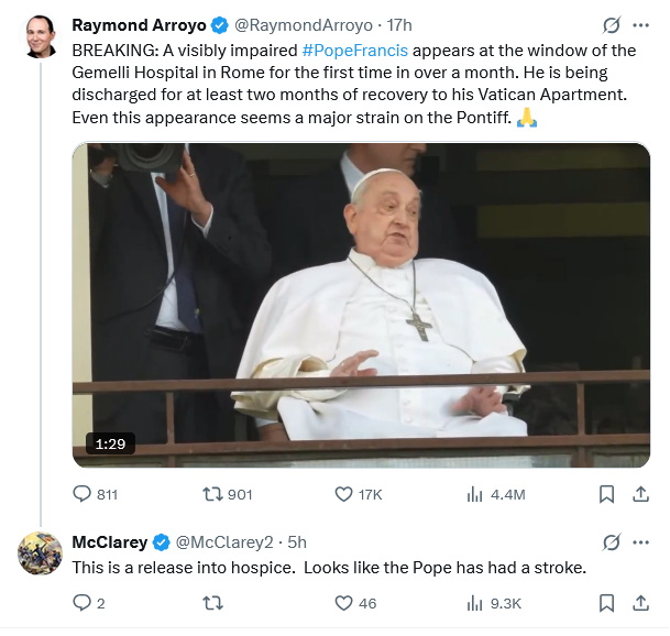 […] Francis:PopeWatch: Hospice – Donald R. McClarey, J.D., at the American CatholicFor Live Updates on the Health of Pope […]