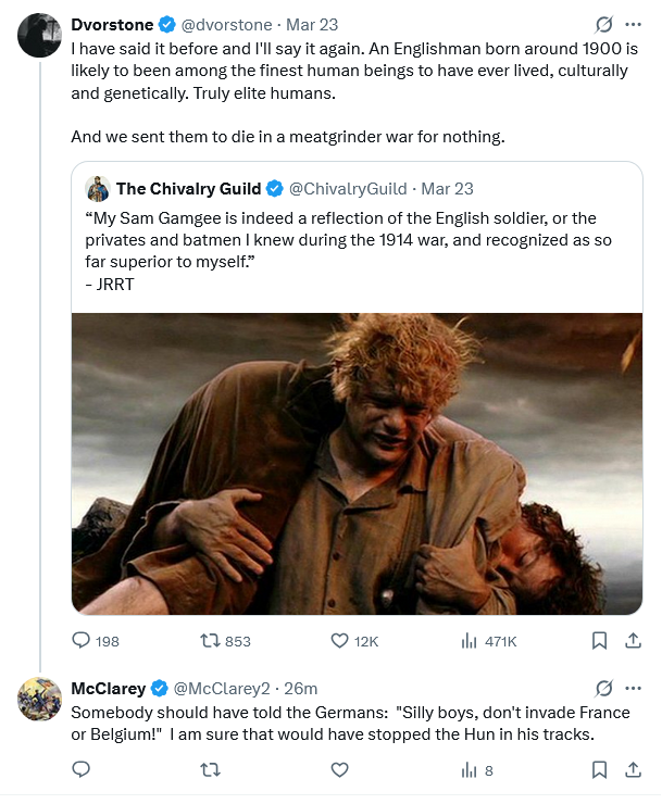 “Because we sent our best to die in a meat grinder for nothing in 1914.”