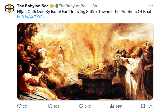 “I just don’t see how satire like that reflects the love of God,” said another concerned citizen. “Does Elijah really think people will accept the true God when he’s speaking so harshly all the time?”
