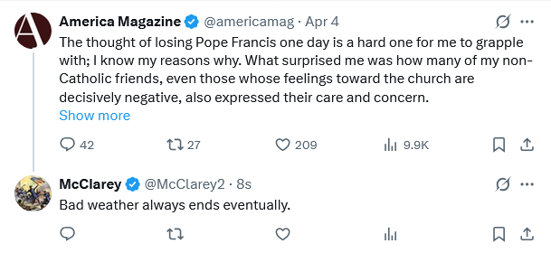 No, those people who hate the Church are sorry to see Francis go because his death will be, in effect, an interruption of their enemy while he is making a mistake. They like having Francis alive precisely because he is a disaster for the Church.