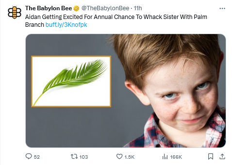 “This is going to be great,” said Aidan, side-eyeing his older sister. “I love Palm Sunday.”