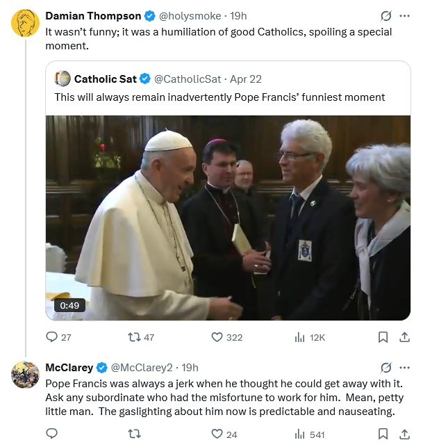 Humiliating someone else and parading it as embracing humility yourself. These are the kinds of things for which Pope Francis is now answering before the Almighty.
