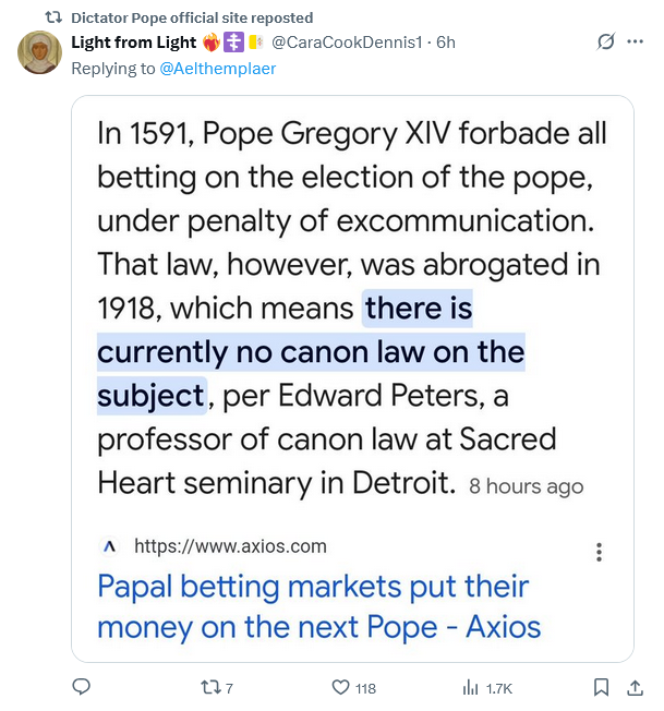 People will bet on anything. There may not be a Church law against it, but it strikes me as sacrilegious.