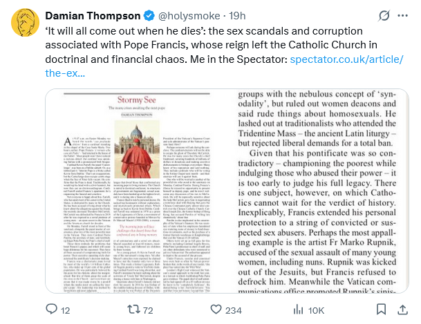 I had a little bit of quiet seething when I was reminded that Cdl. Farrell is the Camerlengo, as he was part of the McCarrick cover-up.