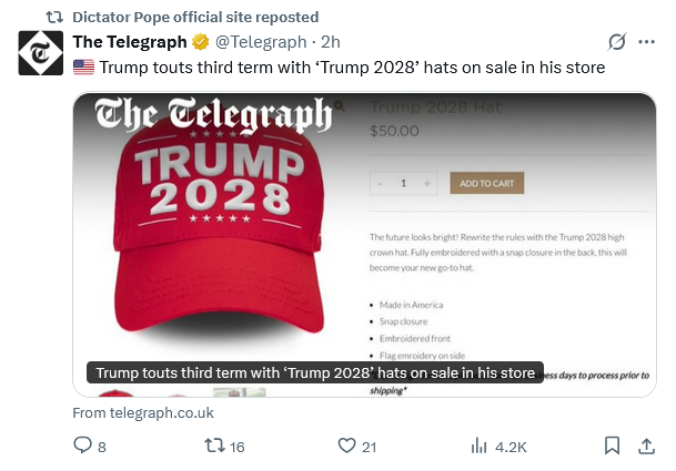 […] Family, & PropertyMourner in Chief – Donald R. McClarey, J.D., at the American CatholicTrump 2028 Hats Available Now – Donald R. McClarey, J.D., at the American CatholicKeeping the Cold Civil War Cold – […]