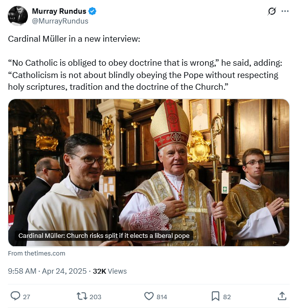 ***The next pope, Müller argued, should not “look for the applause of the secular world that sees the Church as a humanitarian organisation doing social work”.***