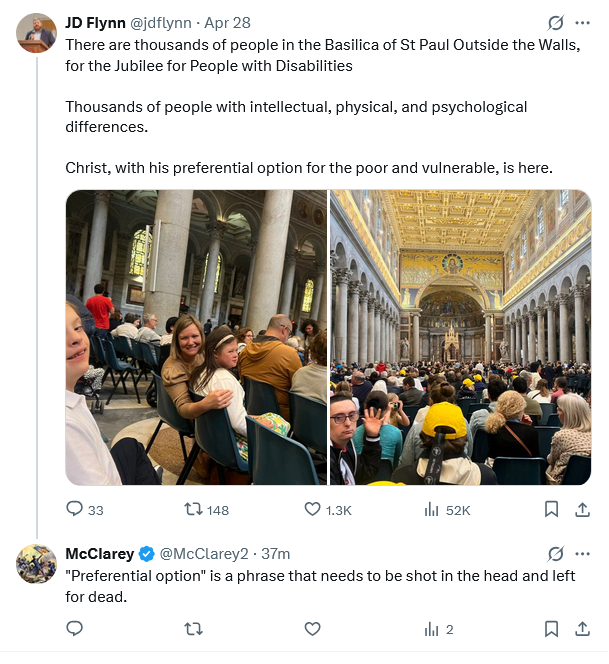 I care about words. Words should be clear and true. “Preferential option” sounds like something in a legal contract. Our good Jesus is there (in my very favorite Papal basilica) for *everyone*. He loves us all, including the poor, the disabled, the wealthy, the healthy – everyone. Like the Prodigal Son’s father, he loves us personally and without preference.