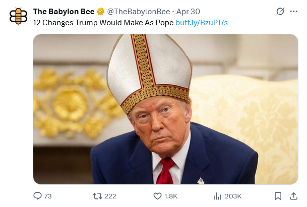 - Confessions must now begin with confessing your favorite Pope: Hint: It’s Pope Donald.