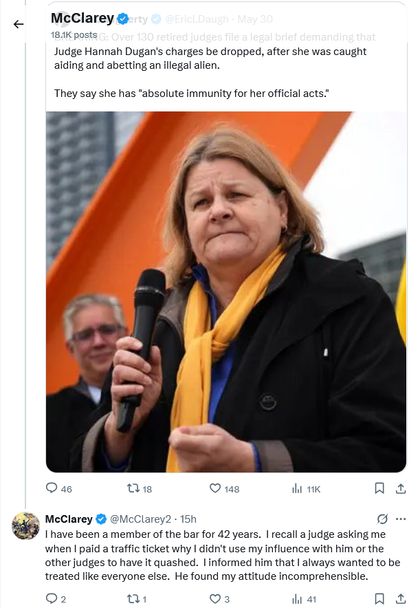 How is escorting a criminal out of a side door, knowing that federal officers had an arrest warrant for him, part of her “official duties”? She actually released him when his victim was sitting there waiting for his state trial to begin.