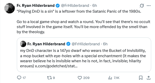 I still get a kick out of the idea that the problem was that Satanic Panic and those rascally fundamentalists. Fact is, those fundamentalists and parents were telling kids not to do a whole boatload of things that the kids happily ignored. So why would it work with this, as it did work so well? Because it wasn’t the fundamentalists. It was the media that launched an assault on the game, hitting it from every angle it could. Why, I’ll never know. But it did, and it worked. And the press left the fundamentalists holding the bag, which is the part you have to give the media credit for.