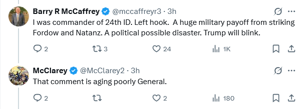 Great point, Josh. I have to wonder why we even allow retired military personnel to become paid talking heads in the first place. I’ve not done any research on this point, but it occurs to me that former noncoms and commissioned officers ought to be prohibited for life from speaking or writing in public about military affairs for compensation, possibly with some kind of exception for legitimate teaching positions. The antics of these people like McCaffrey are pathetic, and hurt the country they swore to serve and protect.