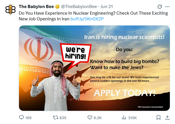 - Enriched Uranium Inspector: A fun, hands-on occupation with room for growth, 30,000,000 IRR monthly (to be paid from pallets of U.S. currency). Knowledge of goat-herding required.