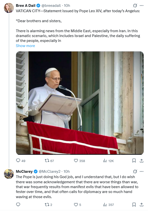 […] Leo XIV Sweet Order’s Reign Embrace:Summary of Pope Leo XIV’s Weekend – Rome ReportsWars & Rumors of Wars – Donald R. McClarey, J.D., at The American CatholicLeo, in Address to Govt Officials, Cites […]