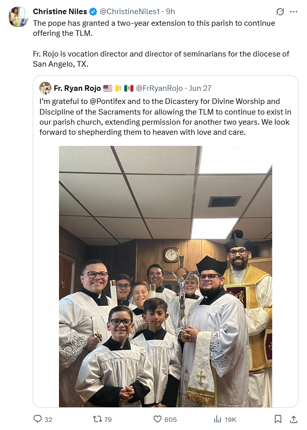 On that note, I am growing weary of hearing and reading lamentations from certain Trads who seem to think that unless Pope Leo completely and immediately reverses his predecessor’s actions, against the TLM and in other areas, he is just Francis II in disguise. It seems to me that Pope Leo seeks to move toward a less divisive and intolerant approach to pre-Conciliar Catholicism without openly rejecting the past twelve years. Maybe this isn’t the way it should be done, or maybe it is. I’m not the one sitting in that Chair, so I can’t possibly know all that Pope Leo is dealing with. Most of the signs are good, and the ones that may not be so good, such as a couple of appointments made recently, may or may not reflect a Bergoglian orientation. It’s still way too soon to start drawing conclusions, IMO.