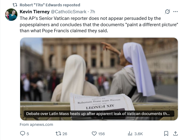 All that’s missing is for Pope Leo to make a denunciation speech to a group of bishops. Won’t happen, of course, but slowly as the facts come in and the Francissplainers can’t deny them, the quicker things accelerate.