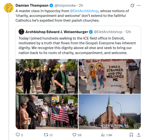 You have no idea how much this cleric causes me personal pain. My youngest daughter was married in the Detroit Cathedral. Fortunately, I live one mile from the diocesan boundaries so I can easily attend Mass in the neighboring diocese.